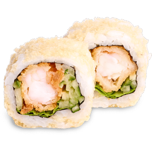Avokadas, agurkas, salotos lapas, mangas, kreminis sūris, sezamo sėklos, karai padažas, laiškinis česnakas
