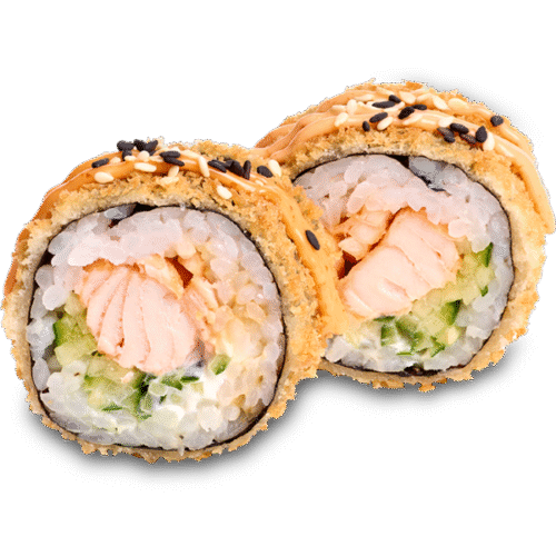 Avokadas, smidrai, agurkas, raudona paprika, salotos lapas, majonezas, tempura, teriyaki padažas, sezamo sėklos